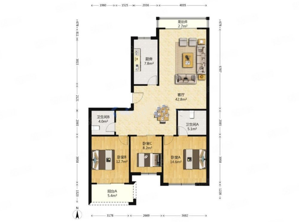 • 户型:3室2厅2卫