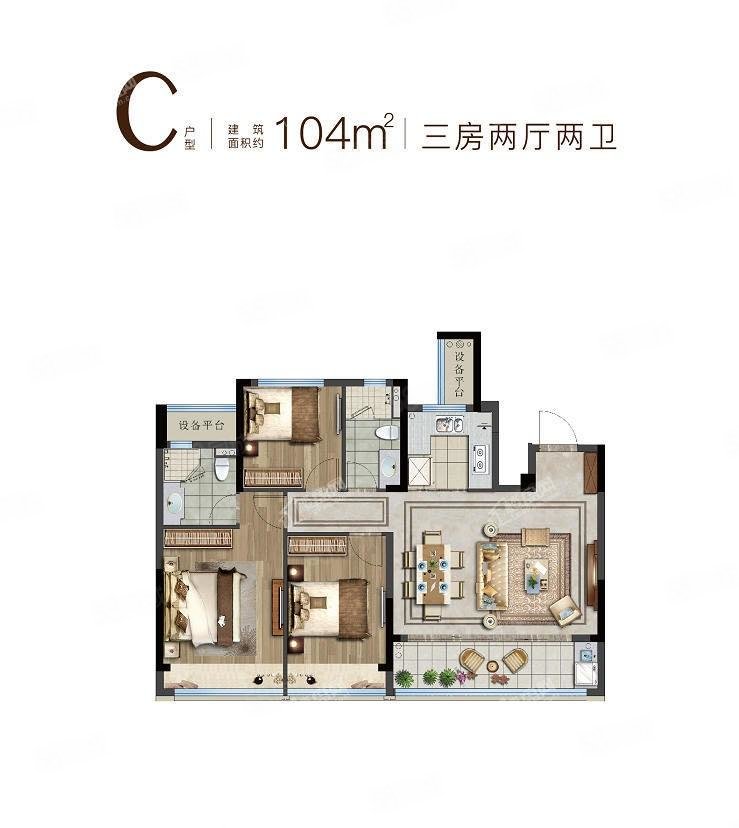葭沚金成华府高层3室2厅2卫104㎡