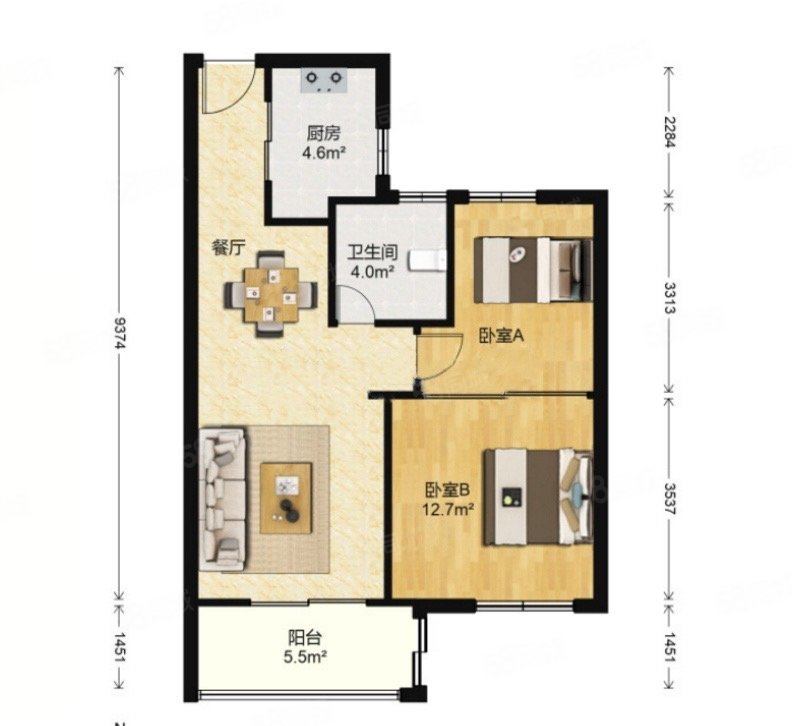 • 户型:2室1厅1卫