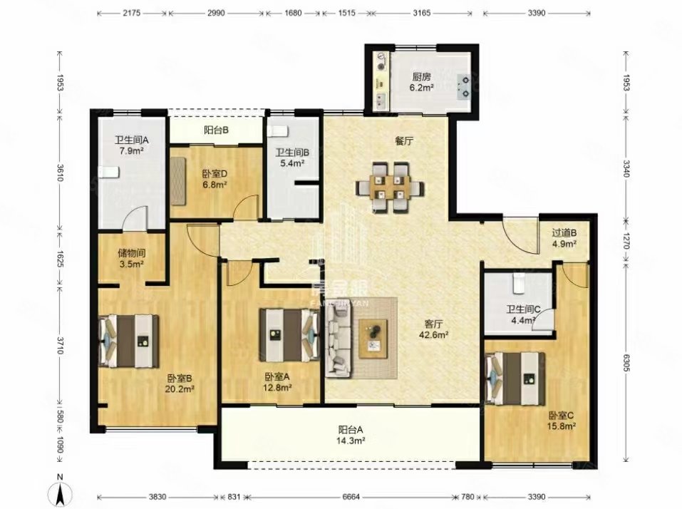 户型:4室2厅3卫