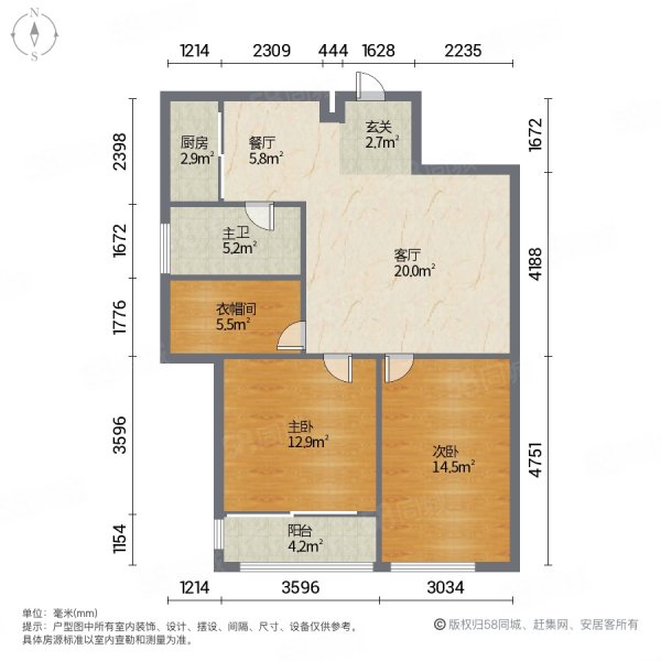 • 朝向:南北