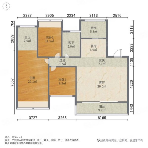 • 朝向:南北