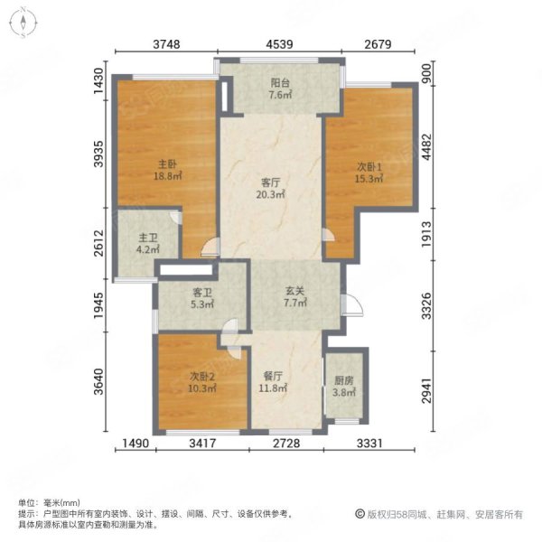 户型:3室2厅2卫