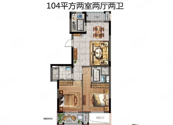 洪家恒大城市天地高层2室2厅1卫104㎡