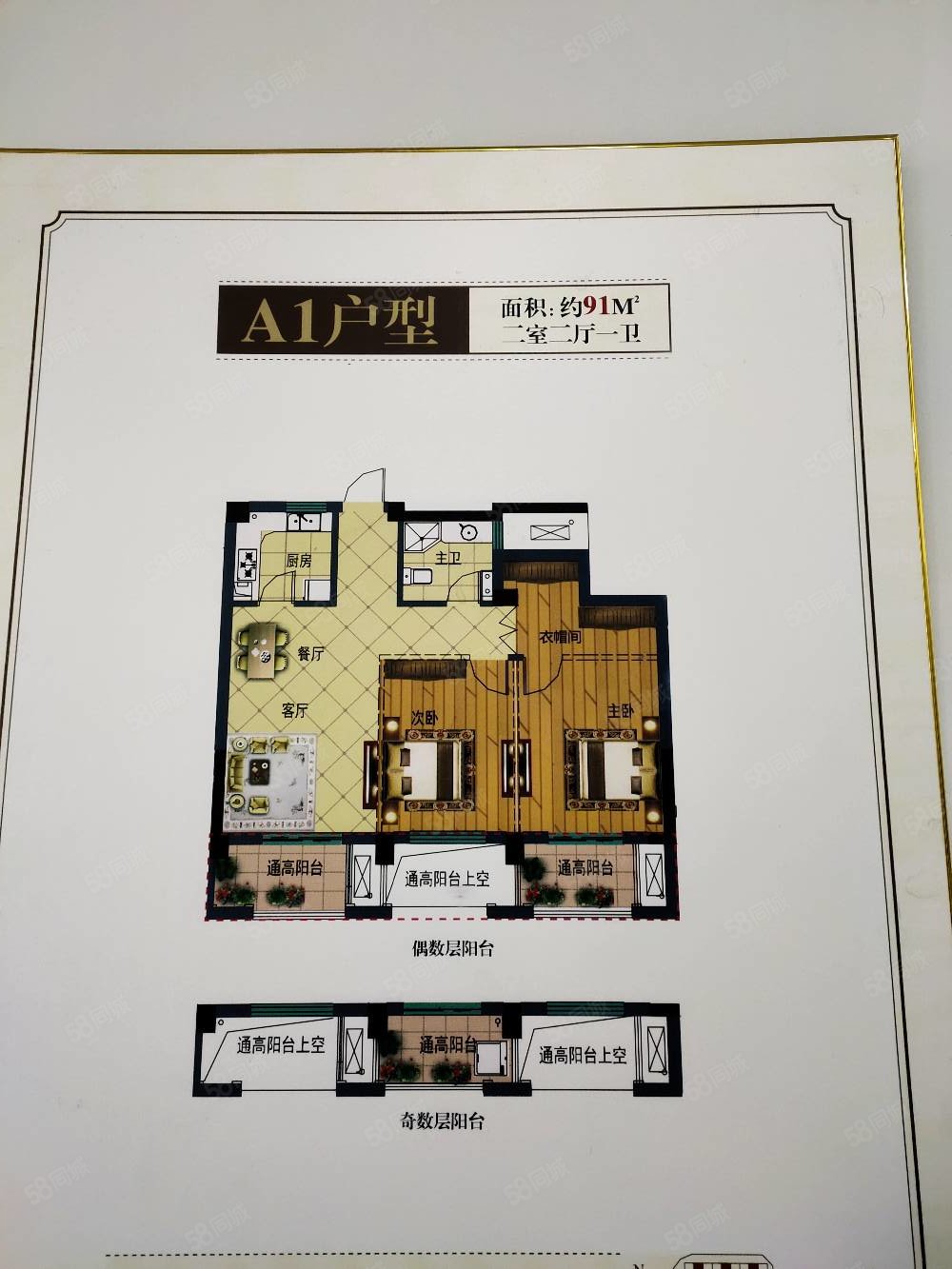 洪家城市家园高层2室2厅1卫91㎡