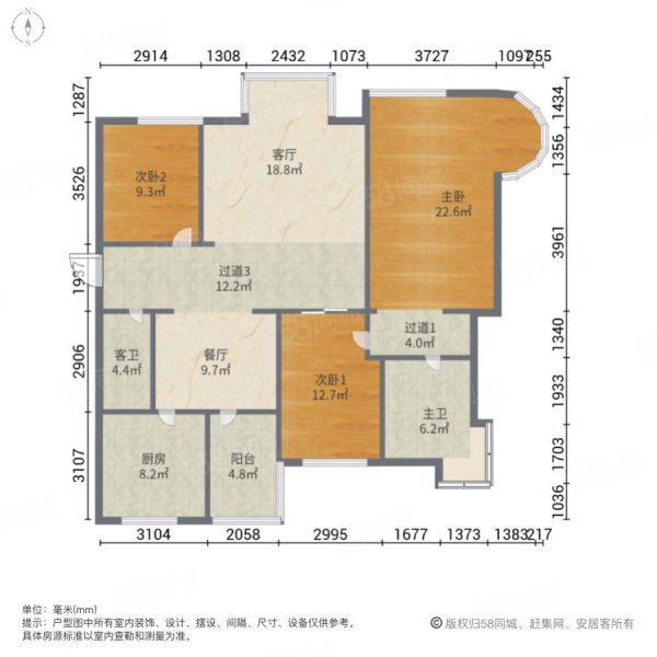 户型:3室2厅2卫
