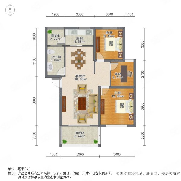 • 户型:3室2厅1卫