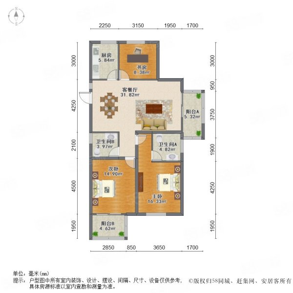• 户型:3室2厅2卫