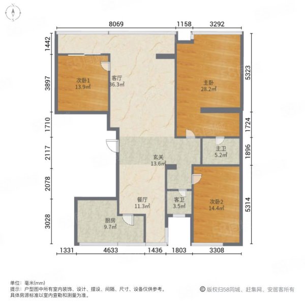 • 户型:3室2厅2卫