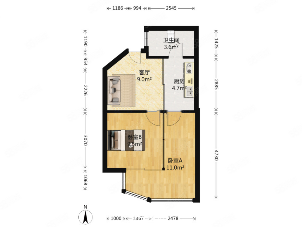 • 户型:2室1厅1卫