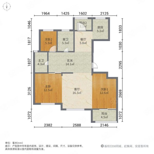 • 户型:3室2厅2卫